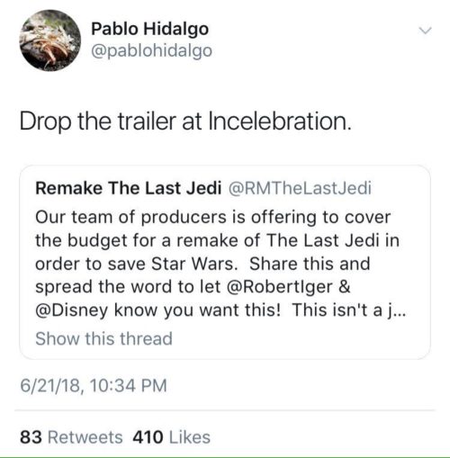 As the galaxy gears up for Star Wars Celebration next month, a smaller, potentially sadder contingent of fans is preparing for the spiritual angry brother to the official convention. Dubbed Star Wars Incelebration by Lucasfilm Story Group member and long-time FSW frenemy, Pablo Hidalgo, the gathering of “incels” is a hot ticket among the angry-white-male-who-blames-women-for-being-unable-to-find-love set.